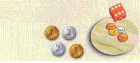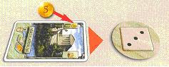 O jogador põe um dos seus dados de acção (fase 2) no disco “dinheiro” e retira da reserva geral o número de moedas que o dado apresenta.