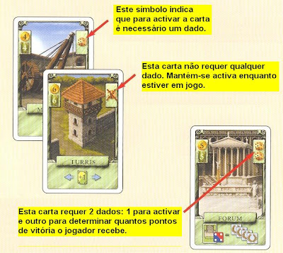 1.Usa o dado “3” para biscar cartas e fica com uma delas “Legat”. As outras cartas vão para o monte das cartas descartadas;