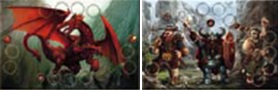 - Arqueiro - permite a este anão usar a carta com o símbolo de Ataque de besta, para atacar o dragão à distância, se estiverem na mesma fila de hexágonos.