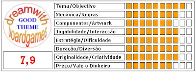 Um jogo muito interessante da Queen Games, com novos e originais mecanismos de jogo. Contudo estava à espera de mais, depois da grande expectativa em redor do jogo.Já fiz a tradução das regras do jogo para Português.