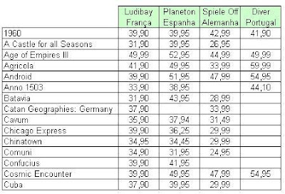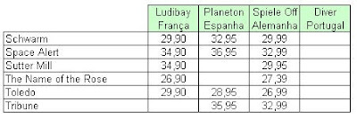 O jogos que fazem parte das tabelas que se seguem, foram escolhidos em função dos e-mail’s que recebi a desafiarem-me para que fizesse esta consulta ao mercado, e também em função dos jogos escolhidos para a votação da lista Pre-Order.